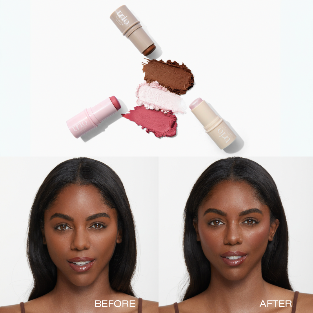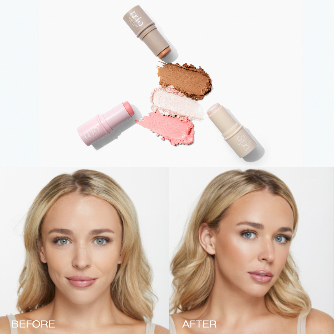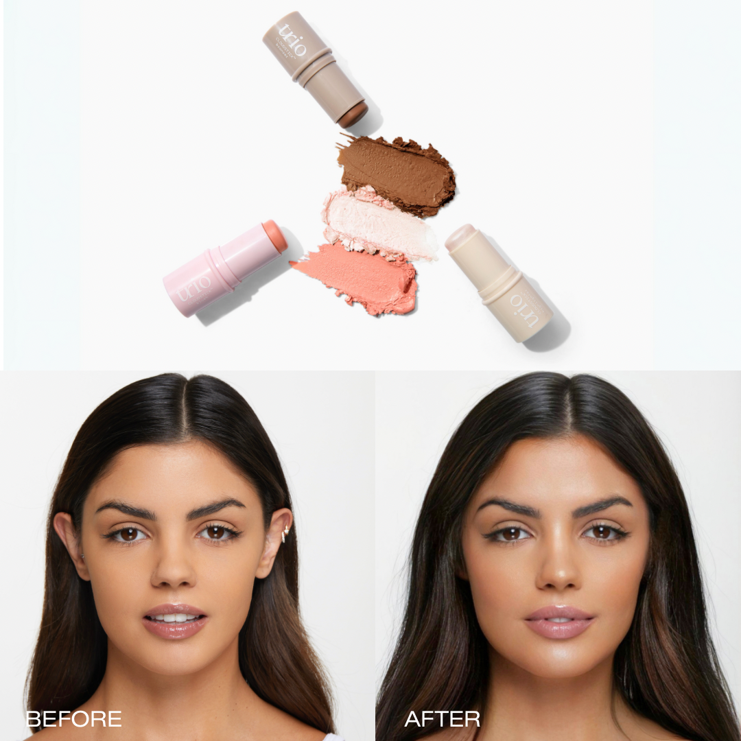 Perfect for the no-makeup makeup look. Effortlessly enhance the natural contours of the face with three easy to apply, creamy, blend-able, skin hydrating & nourishing sticks, that blend to a diffused cloud-like finish - smoothing the look of skin texture. It’ll change the way you do makeup.